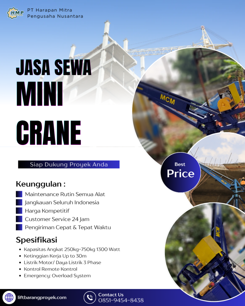 Sewa Mini Crane Tanjungbalai Sumatera Utara dari PT Harapan Mitra Pengusaha Nusantara siap membantu proyek konstruksi Anda.